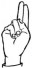 На ћирилици написано БЛАГИЦА ВУЈИЧИЋ састоји се из 14 слова [?]. Исписано ћириличном једноручном азбуком за глувонеме: